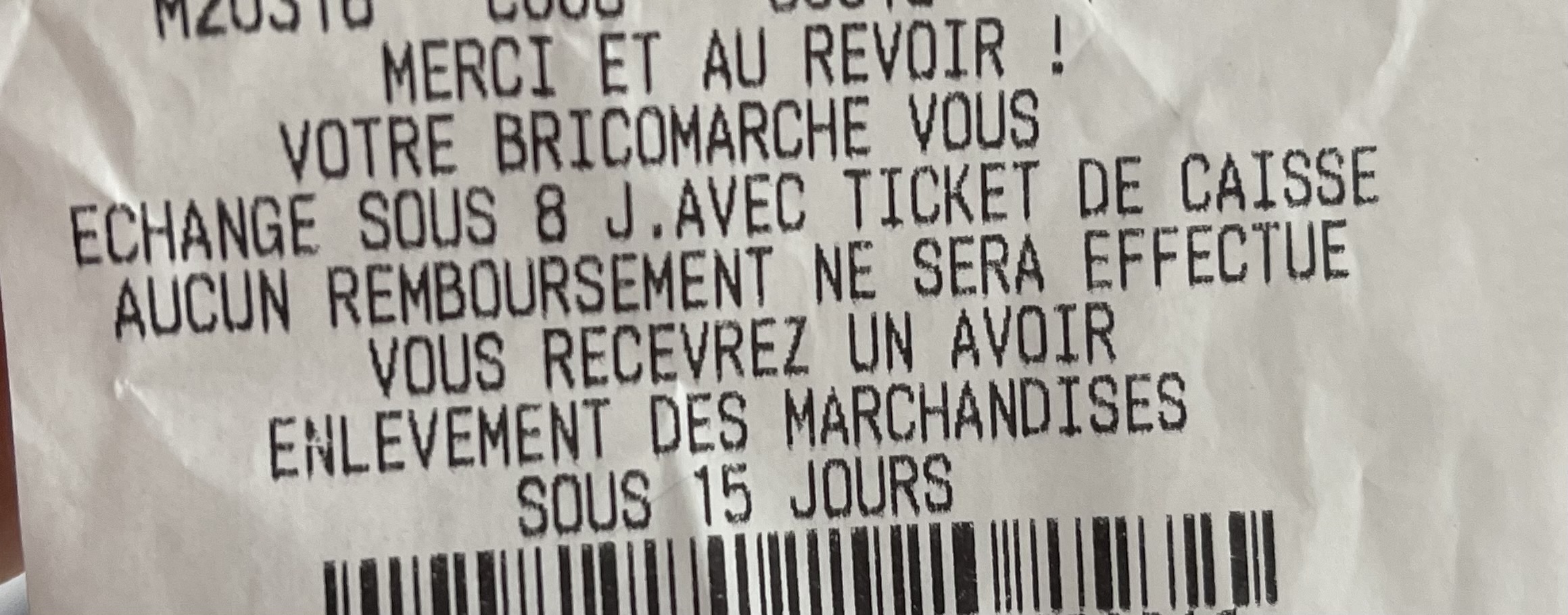 Bonjour JF, Merci pour ce commentaire fort ... sympathique malgré ces 3 petites étoiles qui l'accompagne ... A bientôt Sandrine, Service Satisfaction Clients Bricomarché Nemours