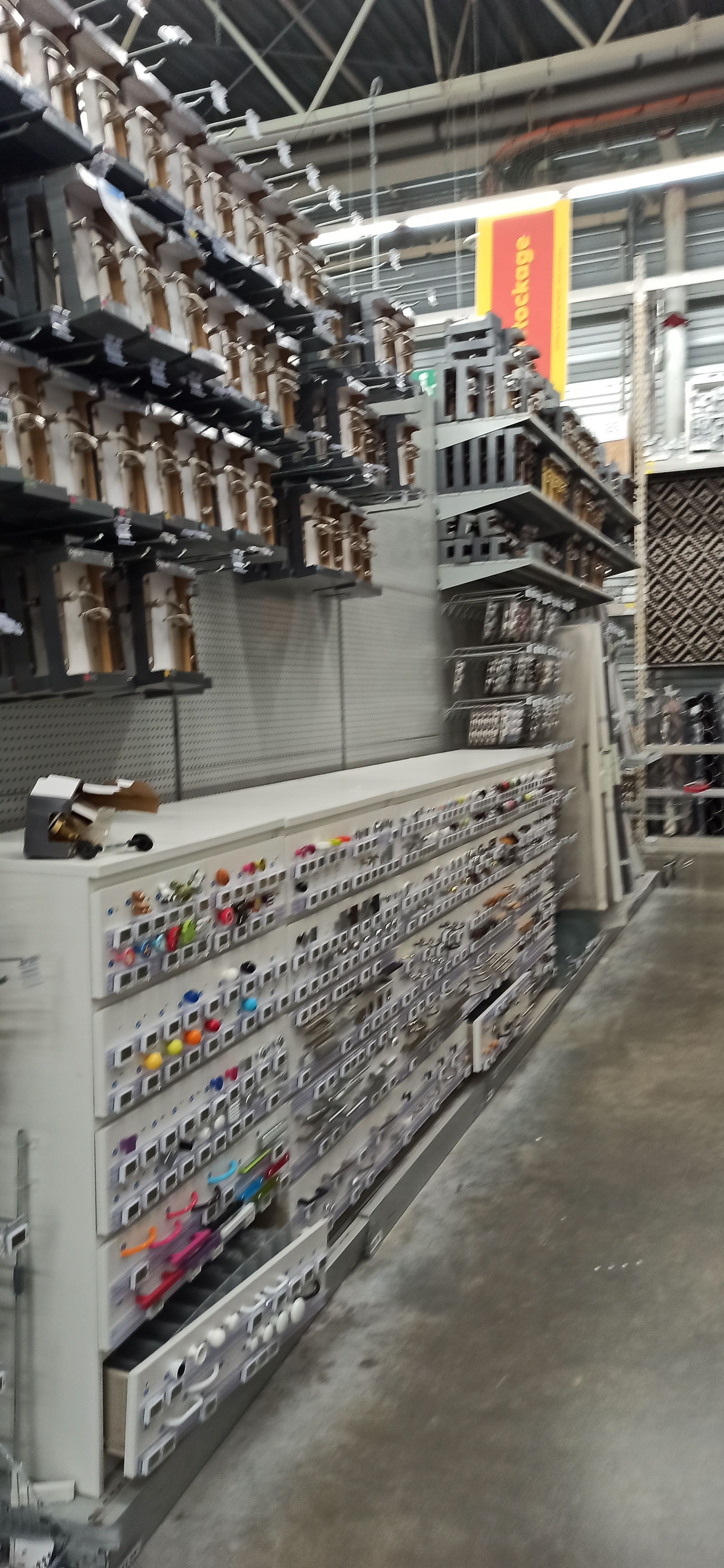 Magasin d'outillage pas bien ranger ,des palettes partout Que des caisses automatiques en quantité insuffisantes