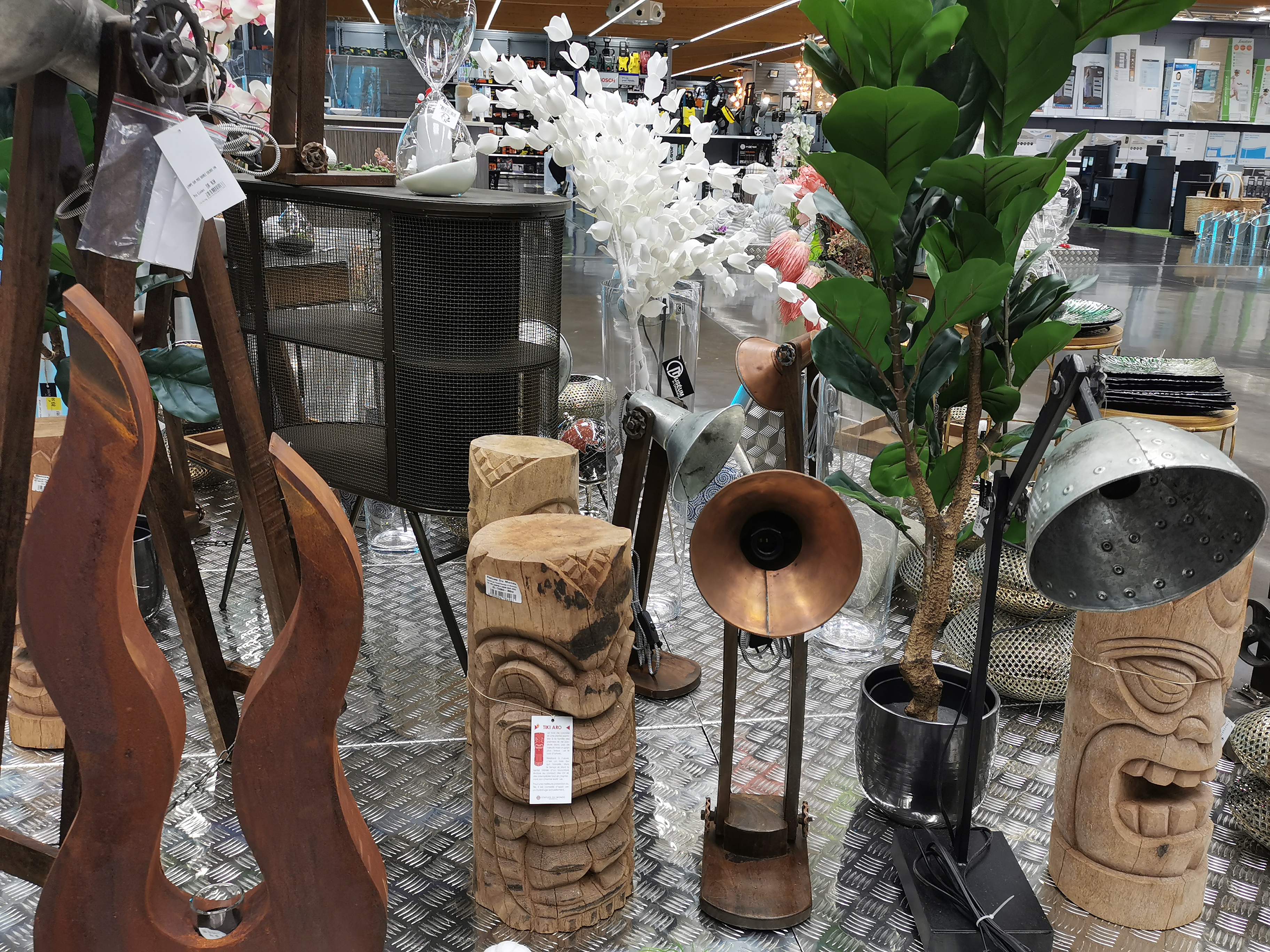 Grands choix et idées de décorations intérieures comme extérieures, luminaires, papiers peints, carrelages, rideaux, coussins.... nourritures & accessoires pour animaux, plantes vertes naturelles & artificielles et même un peu de mobilier intérieur et extérieur. Grand parking pour se garer. Pas trop d'attente car j'y vais souvent le matin.