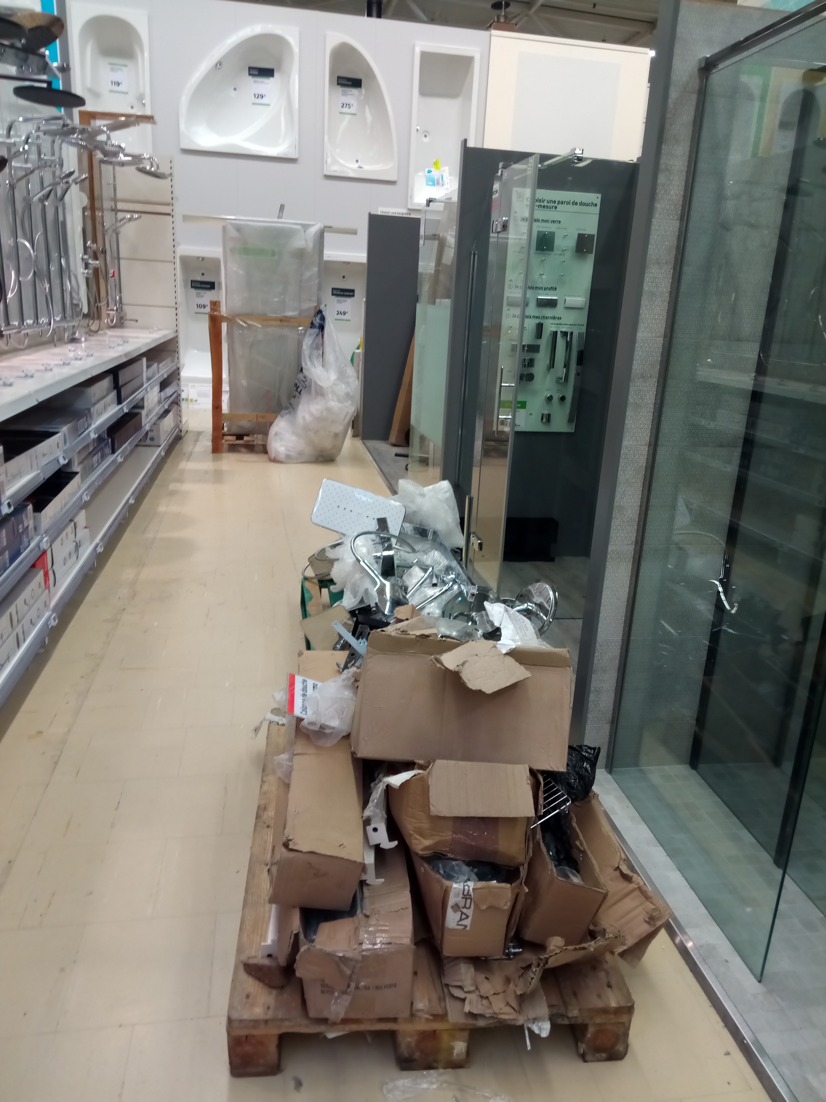 A la recherche en remplacement une douchette pour evier cuisine y en a pas comme d'origine juste une merdouille Ensuite un ventilateur pour plafond y en a pas on me dit la semaine prochaine peu etre, et puis un éviers a posé sur cuvette wc On me dit s'est l'ensemble ou rien, meme l'ensemble je la pas vue misère , un arrêt au perceuses pour un chargeur batterie personne , peut-être je suis hors saison par apport a se qu'il on envie de vendre Enseigne avec aucune éthique écologique préfère détruire que de proposer une ristourne sur du matériel légèrement défectueux