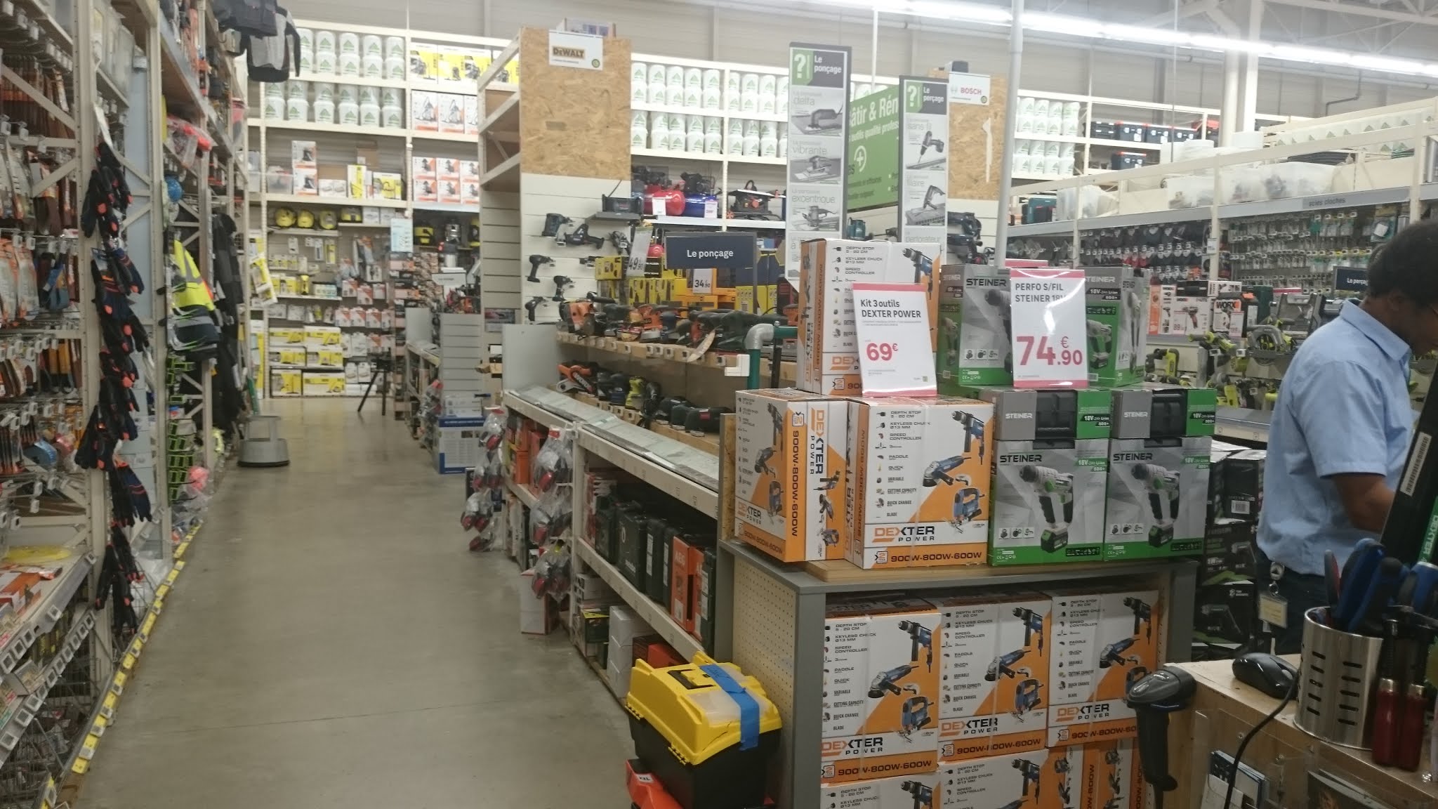 Bien accueilli au rayon peinture et luminaire. Par contre celui de la découpe poli mais il ne faut pas trop lui en demander. L'hôtesse d'accueil est enthousiaste d'occuper ce poste, on voit qu'elle s'investie dans son travail . Le magasin est bien mieux agencé que celui de Nîmes.