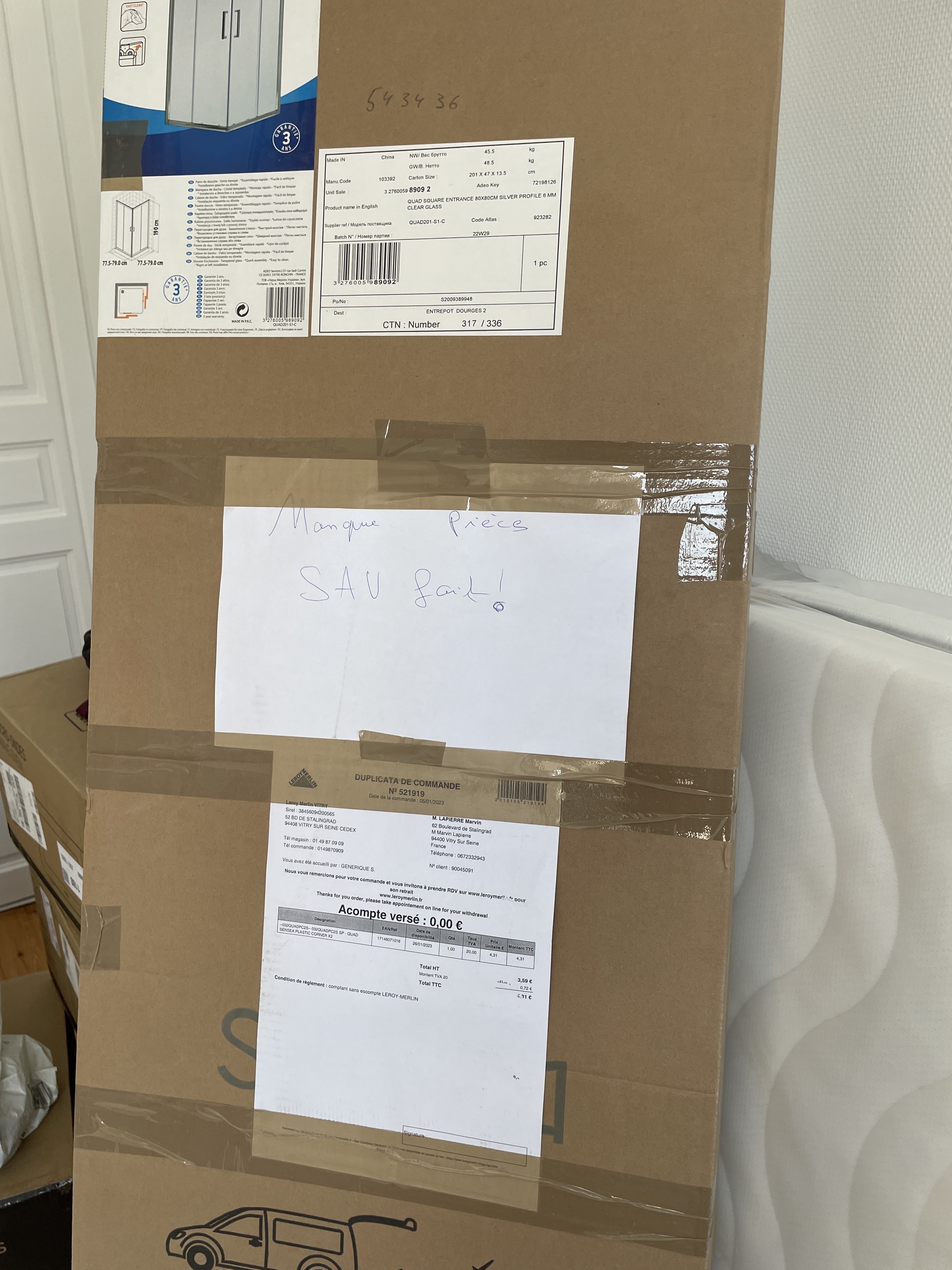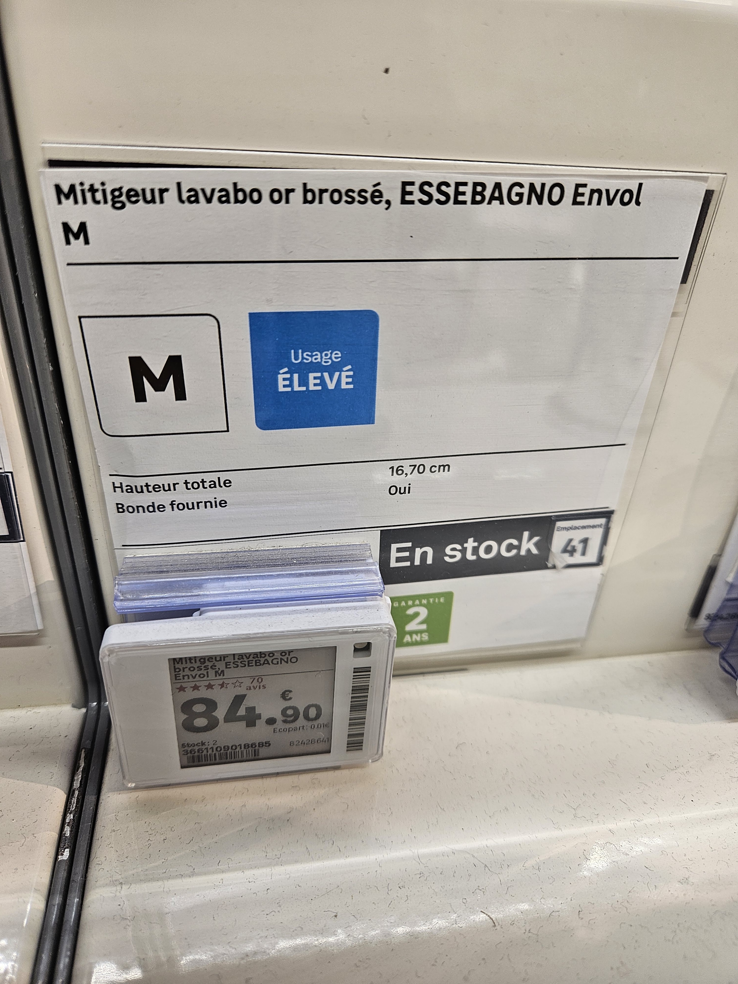 J'ai été très bien renseigné par les vendeurs rayon salle de bain, dépanné et comme il restait seulement un exemplaire du produit que je voulais et que l'emballage laissait à désirer, ils on tout vérifié et fait un geste commercial pour l'état. Excellent moment, pas de perte de temps. Merci aux vendeurs